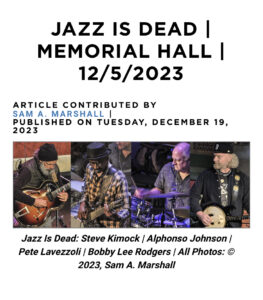 JAZZ IS DEAD | MEMORIAL HALL | 12/5/2023Jazz Is Dead, SK, Alphonso Johnson, Pete Lavezzoli & Bobby Lee Rodgers just completed another run celebrating the Grateful Dead’s ‘Wake of The Flood’s’ 50th Anniversary. Check out this review! -